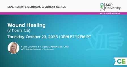 This three hour course is intended to provide clinicians with the most current in-depth information about chronic wounds and their treatment. The course materials and clinical protocols presented are evidence-based and oriented to immediate clinical application for standard and skilled therapy for chronic wound healing. The hands-on lab demonstrations provides active participation to reinforce concepts and techniques integrating biophysical agents to accelerate wound healing and positively impact participation, activity, and functional performance.