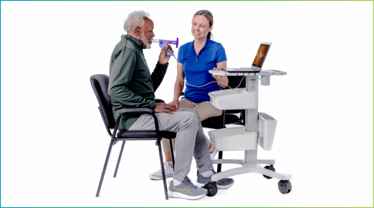 The OmniFlow® turns basic breathing exercises into an engaging, interactive experience designed to support respiratory health in older adults. By combining gentle airflow monitoring with game-like immersive virtual environments, OmniFlow helps promote lung strength, relaxation, and endurance—key contributors to staying active and independent.