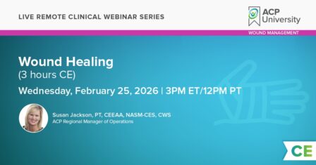 Wound ManagementThis three hour course is intended to provide clinicians with the most current in-depth information about chronic wounds and their treatment. The course materials and clinical protocols presented are evidence-based and oriented to immediate clinical application for standard and skilled therapy for chronic wound healing. The lab demonstration will reinforce concepts and techniques integrating biophysical agents to accelerate wound healing and positively impact participation, activity, and functional performance.
