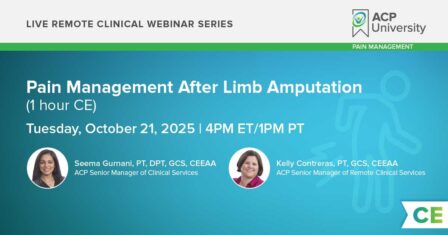 This one hour CE course is intended to provide clinicians with the most current in-depth information about pain management after limb amputation. The lecture will reinforce concepts and information related to the prevalence of amputation, importance of collaborative care, physiology and characteristics of pain including types of pain following amputation and treatment options. The course content and clinical protocols are evidence-based and oriented to immediate clinical applications impacting patient activity performance and participation in mobility and social roles.