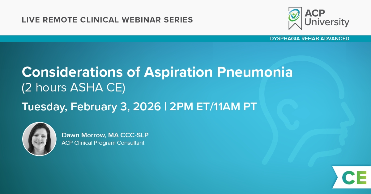 Aspiration is a common occurrence in swallowing. Determining when aspiration becomes pathological is a multifactorial process that requires critical thinking and surveying the current evidence. This course will describe the research related to the predictors of aspiration pneumonia. In addition, the course will provide guidance concerning how to mitigate the impact of aspiration as part of comprehensive dysphagia rehab program and in the total picture of health.