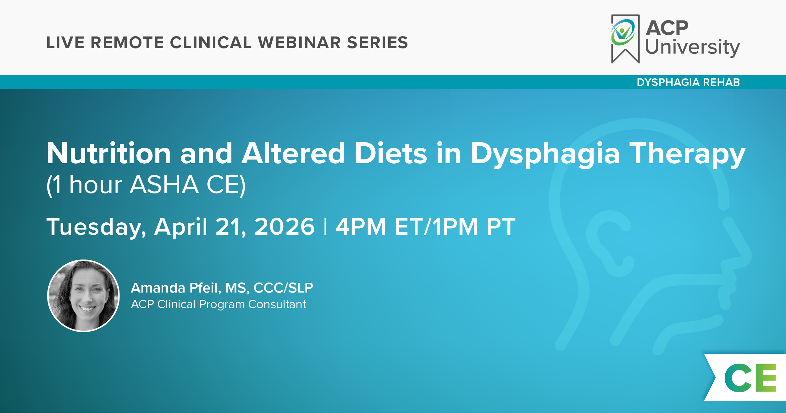 This intermediate level course offered via National Webinar Series presents an overview of concepts regarding how altered diets may impact nutrition and overall health. The course reviews possible negative consequences to altered diets, physical consequences of malnutrition and diet-based interventions to achieve the most optimal nutrition and hydration outcomes.