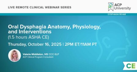 A comprehensive understanding of swallowing kinematics includes adequate consideration of the oral phase. This course reviews the anatomy and physiology of the oral phase of swallowing. Furthermore, this course discusses evidence-based assessment, research, and therapeutic interventions, including that of surface electromyography (sEMG) relating to the oral phase of swallowing.